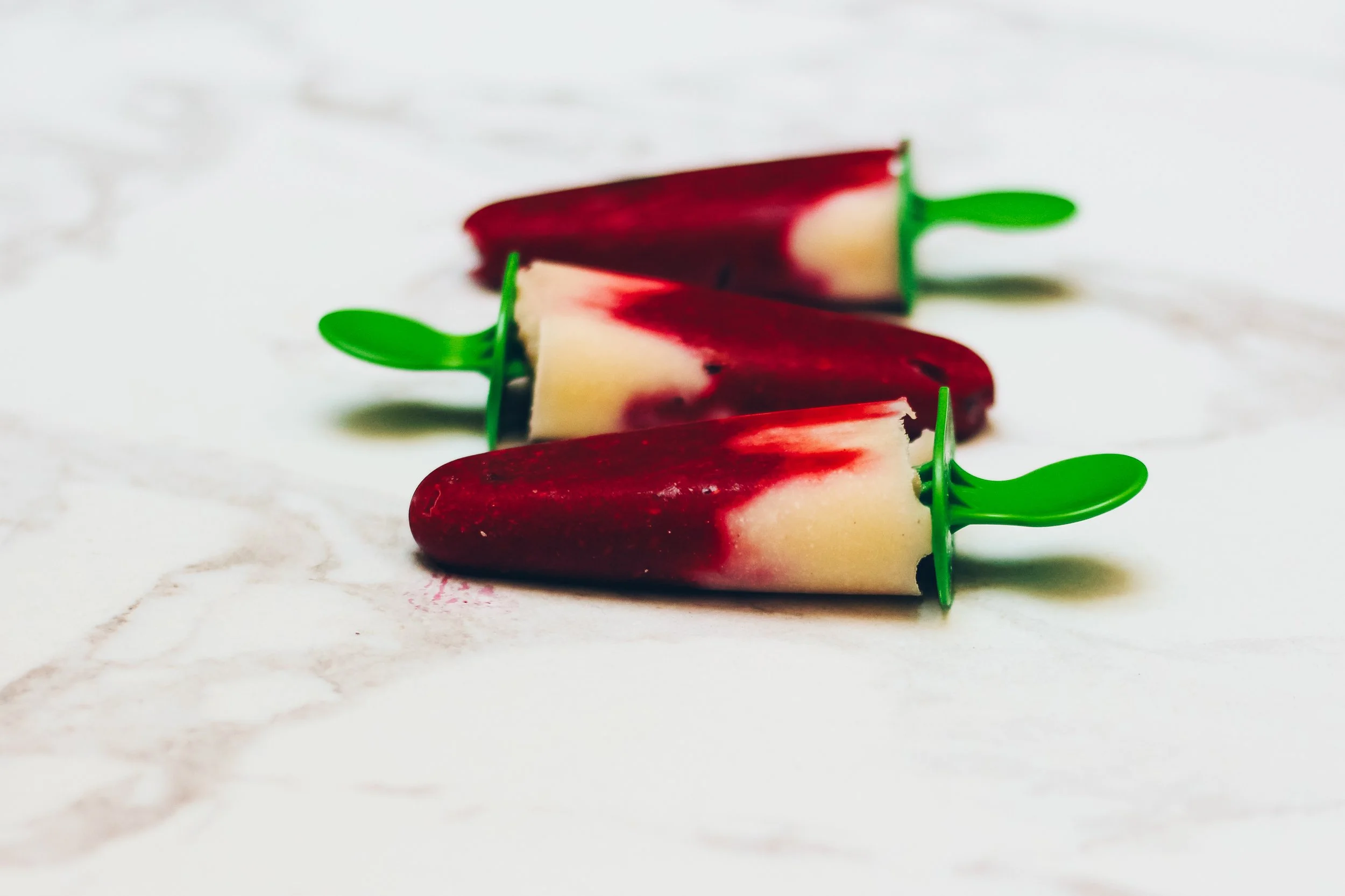 Steck die dazugehörigen Stiele hinein und beweg sie ein paar Mal auf und ab oder mach kleine Kreise, um schöne Muster zu erzeugen. Anschließend für mindestens 3-4 Stunden im Gefrierfach vollständig durchfrieren lassen